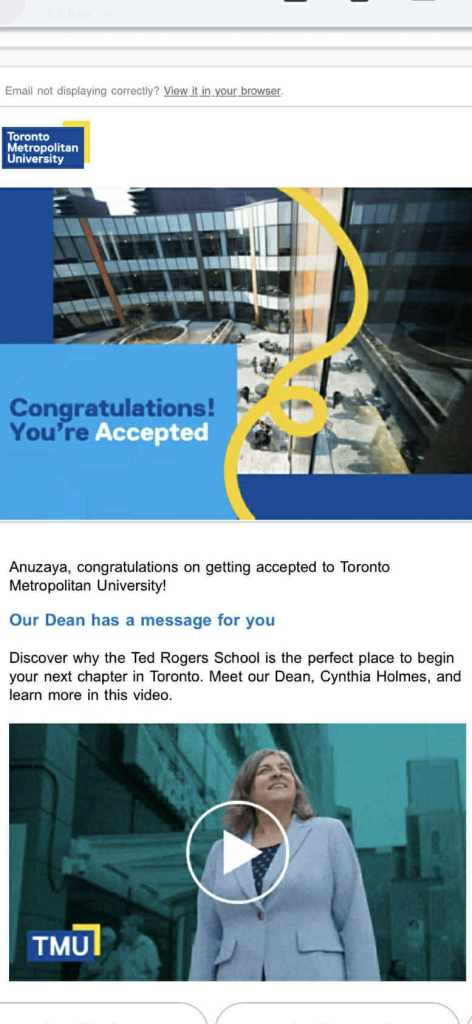 2а ангийн сурагч Э.Анузаяа Lakehead University болон Toronto Metropolitan Univeristy-д тэнцсэн хариугаа хүлээн авлаа. Баяр хүргэе.![]()